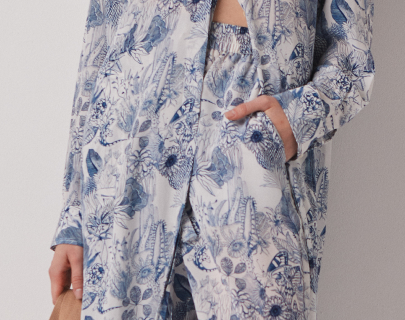 Our 100% Silk fabric is crafted from most premium silk threads. It is strong but lightweight and carefully made to give your skin a breezy feeling of freedom. It is handmade in a slow process at a small family factory in an Indian village, providing jobs for locals who are proud of their craftsmanship